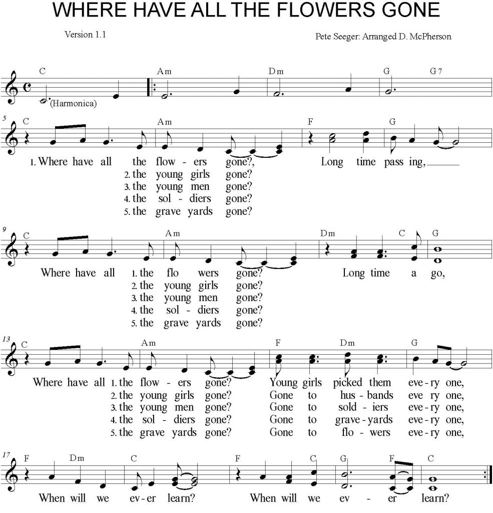 Pete Seeger werkte als onderzoeker bij de Archives of American Folk Music in New York, waar hij kennis maakte met Woody Guthrie, de aartsvader van de moderne folkbeweging. Bepalend voor zijn verdere carrière was zijn kennismaking met het werk van de Russische schrijver Michail Sjkolochov, met name de roman De Stille Don, waarvoor hij later (in 1965), de Nobelprijs won. Daar kwam tekst in voor met de tekst “Where are all the flowers, the girls have plucked them enz.” uit een traditioneel Kozaks slaapliedje. Het is bedoeld als protest tegen de eeuwige oorlogvoering. Seeger werd daardoor zodanig geïnspireerd dat hij deze tekst enigszins bewerkte en op de muziek zette van een oud Iers volksliedje.